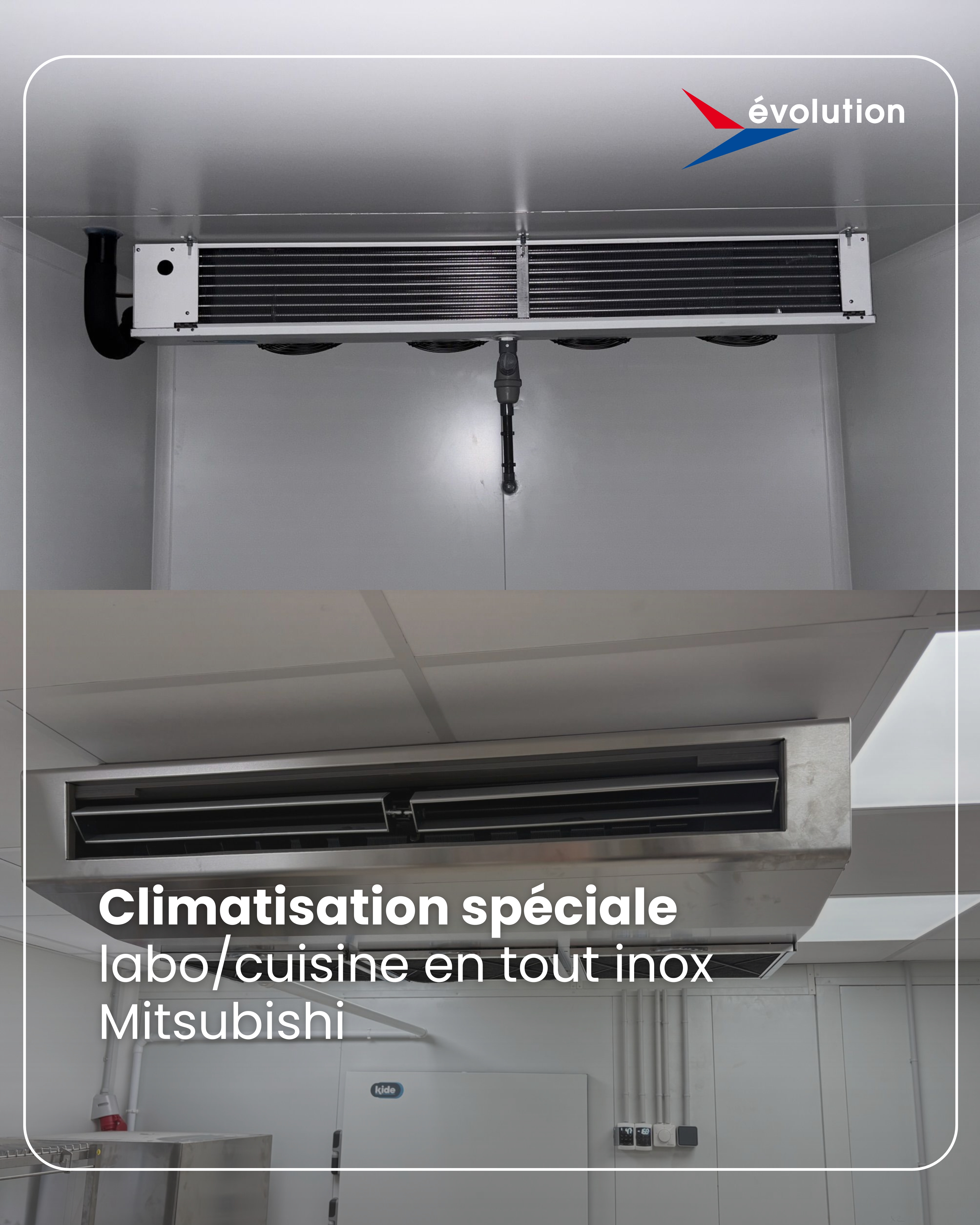 - Climatisation spéciale laboratoire et cuisine, en tout inox, avec du matériel Mitsubishi performant et durable.